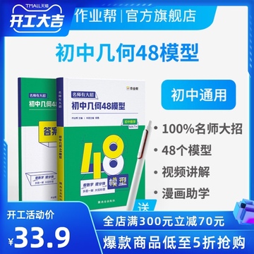 直播名师带你5步搞定初中数学几何,视频讲解,漫画助学讲透48个几何模型,针对中考考点的几何专项训练,孩子打牢基础的几何数学字典,全国通用!目前天猫商城作业帮旗舰店售价¥38.9,可领取¥30优惠券,实付¥8.9包邮到手。