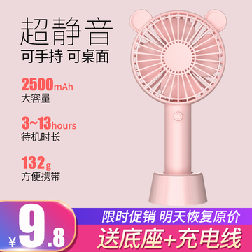 4叶大风 便携静音小风扇1200毫安 券后7.8元起包邮 送充电线+底座