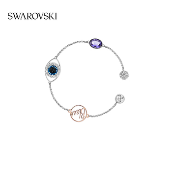 SWAROVSKI 施华洛世奇 新款DIY磁力可组合恶魔之眼手链 5365749,链长17.5cm(17cm款货号为5373230),采用了全新设计的隐藏式磁扣,让您可叠搭Swarovski Remix Collection的其他首饰,缔造独树一帜的造型。充满象征意义的饰链,揉合了恶魔之眼与金属字母等装饰,既可作手链佩戴,又可加上对比强烈的饰链,变成别具一格的包覆式手链、束颈项链或项链。千变万化的搭配组合,是送礼的上佳之选。