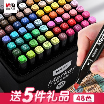 晨光文具双头马克笔套装,双头设计,纤维笔头,吸墨均匀,出水流畅,耐磨不起毛,颜色鲜艳且速干,附着力强,保存时间长。