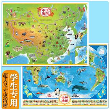 家家必备的好东西!【覆膜防水的】这个真得给孩子买!高清大尺寸,中国地图世界地图,一共2张!!高清大尺寸的!上面标示了各种地区的特色,让孩子从小了解我国省份、认识世界!