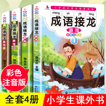 超级厚4册,班主任重点推荐!小学生必读课外书,趣味《成语接龙》。大字彩图注音版,让孩子边玩边学成语,在快乐中学习,提高阅学习兴趣,积累成语,提高写作水平,书店一套起码50多,今天4本14.8,闭眼抢~