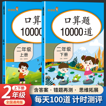 老师推荐,部编版同步人教版,限量5000册,5.8秒!正版口算题10000道,小学2年级数学同步专项训练!含答题,错题再测,思维拓展!每天100道,计时测评!!宝妈们速度拍。