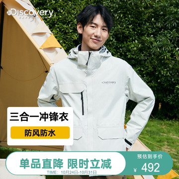 Discovery情侣三合一加绒冲锋衣 券后359.4元包邮