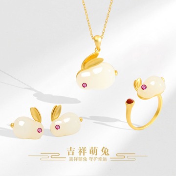 【拍一件19.9,拍3件39.9】和田玉新中式,玉兔是中式文化的吉祥物,代表了对未来美好生活的期昐。和田玉加925银完美搭配,专业团队打造,支持检测。