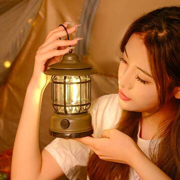 露营不能少的氛围灯~~携带方便!!超长续航!可亮一天一夜,户外下雨不用慌,ipx4防水性能!!复古简约造型~氛围感满满!!