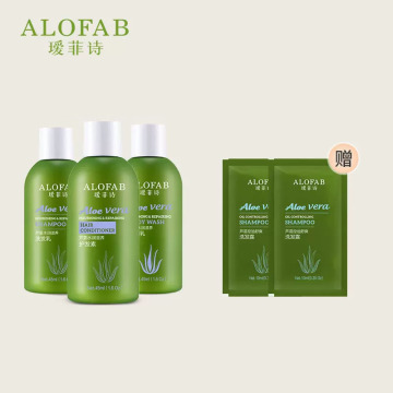 【套装含洗发水45ml+沐浴乳45ml+护发素45ml,赠送20ml洗发水】屈臣氏同款430ml要98元,咱共135ml仅9.9元!美国瑷菲诗芦荟洗护3件套!配方温和,泡沫绵密细腻,洗后不干涩!