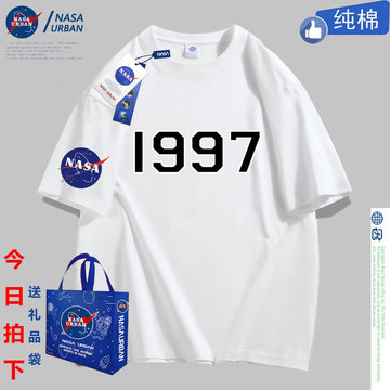 (拍3件49.7元)NASA情侣款纯棉短袖T恤,送运费险,合体有型,干净利落,纯棉宽松透气,精致袖口,不易变形,简约百搭,多个颜色可以任意的选择,给你舒适的肌肤体验~