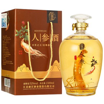 徽膳堂高档52°人参酒 礼盒装1500ml49.9元 ,甄选上好人参,纯粮白酒浸泡, 滋补又养生,自饮送礼佳选。