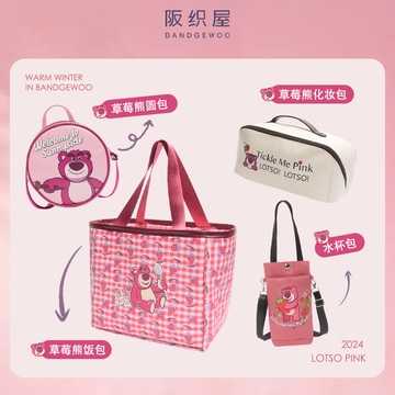 阪织屋草莓熊全系列ip联名包,便当包化妆包水桶包ip联名,动漫卡通可爱又实用!
