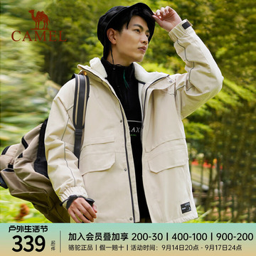 满减凑单+新客礼金+88会员95折到手只需要249元,骆驼冲锋衣夹克外套男秋冬季新款连帽立领加绒加厚保暖旅行服,超赞~
