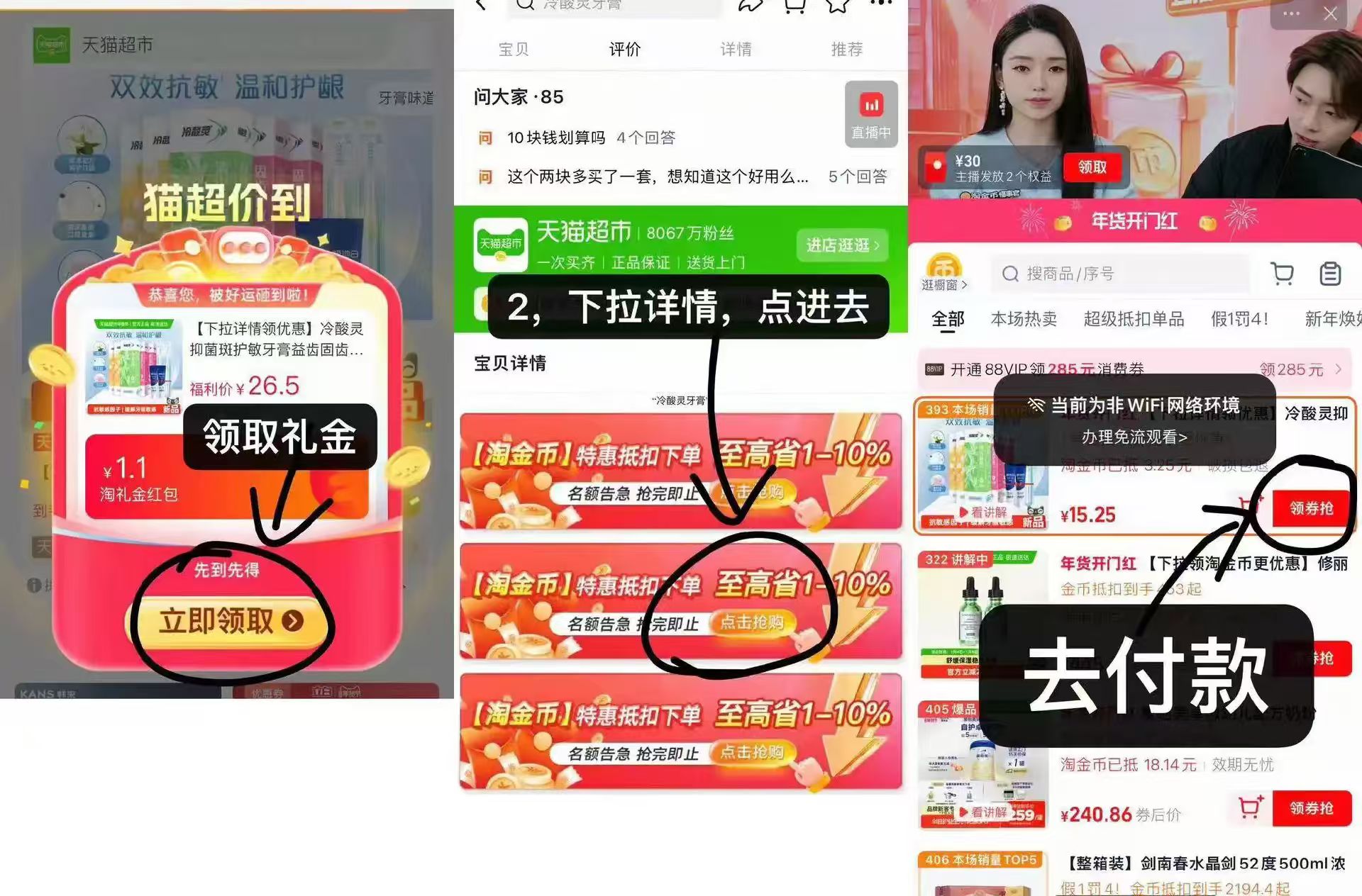 详情页下拉--金币抵扣,叠加1.1淘礼金补贴,拍下15.25元包邮