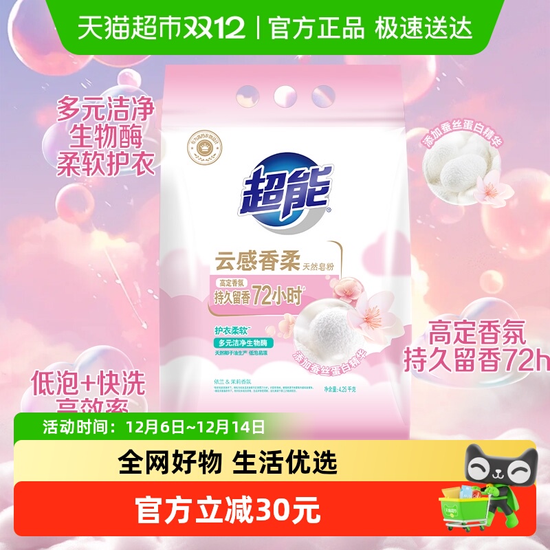 超能 云感香柔天然皂粉4.25kg 39.9元包邮,卷后